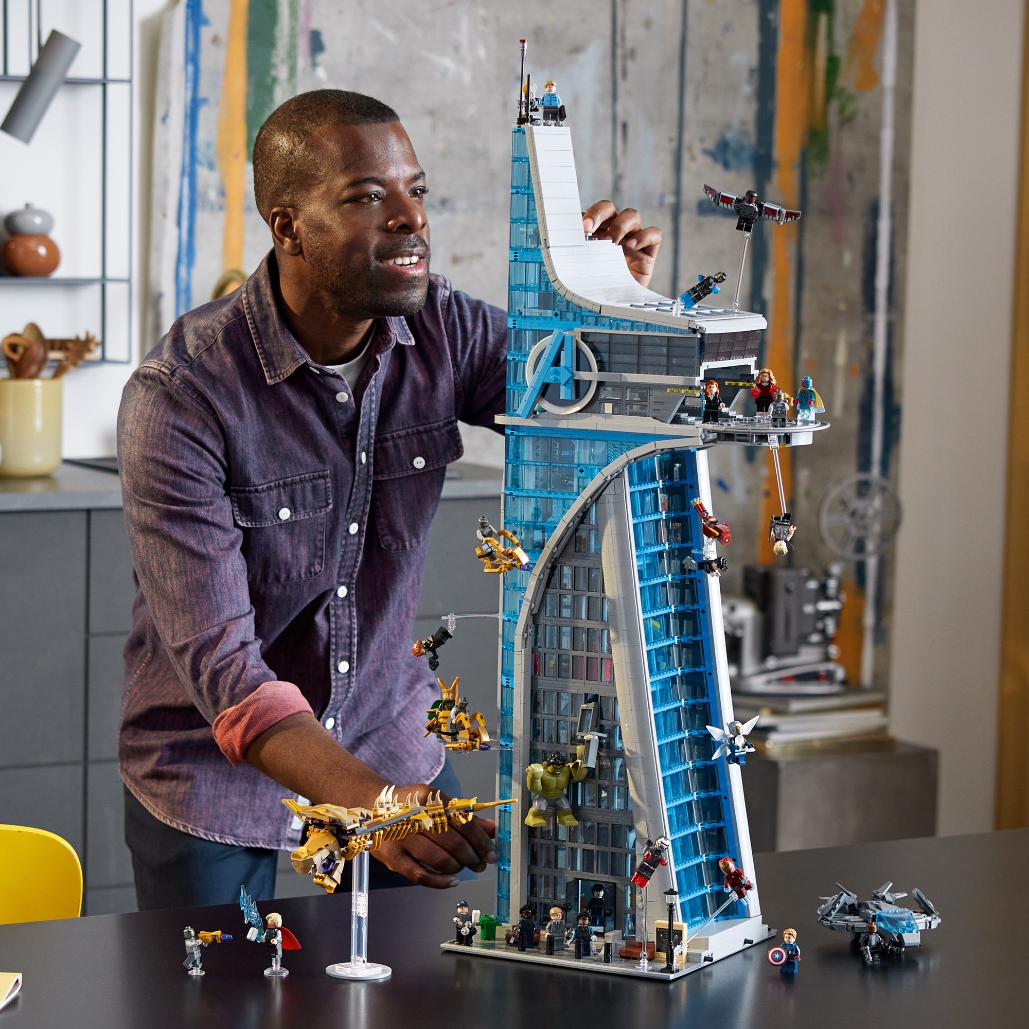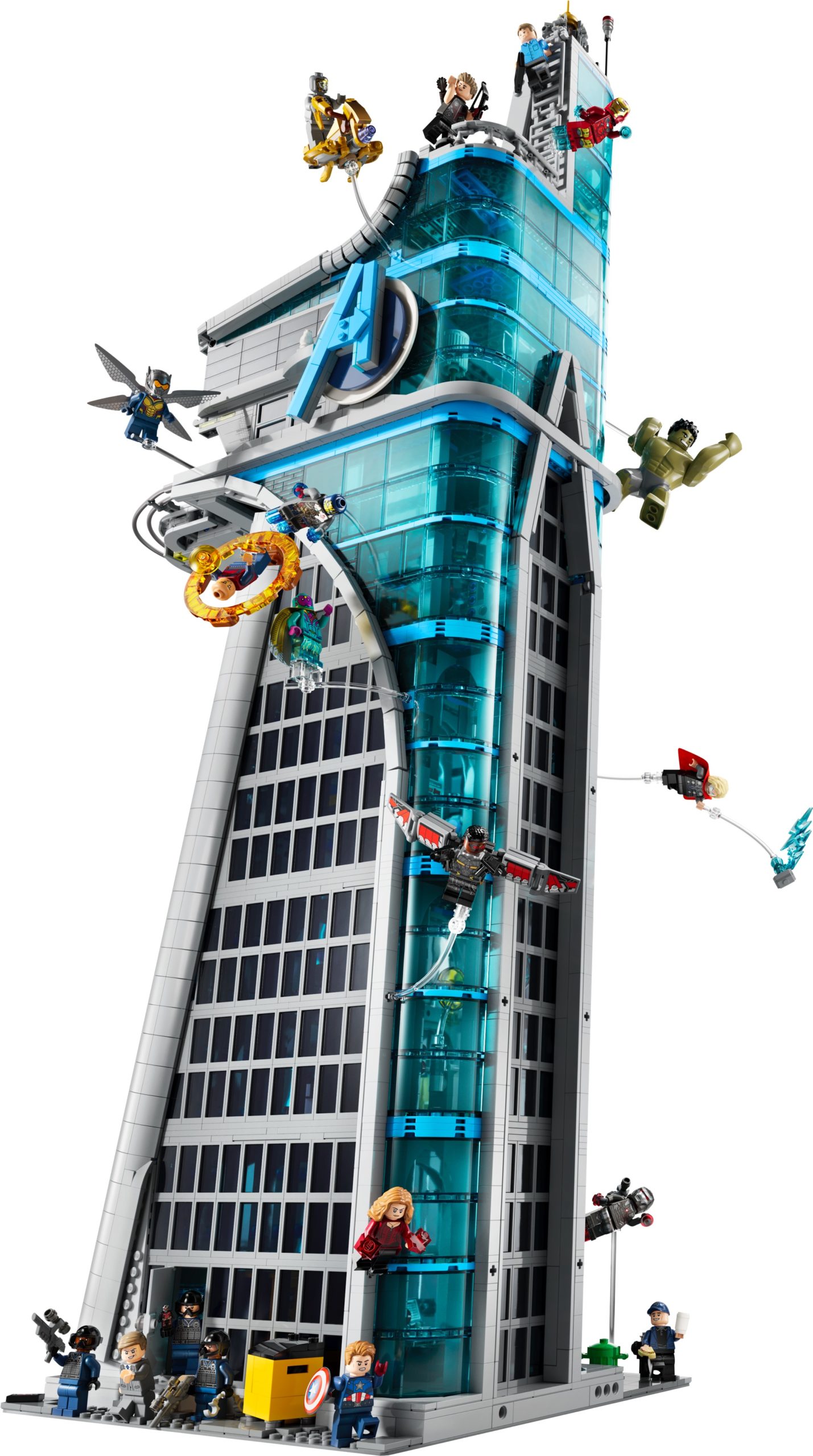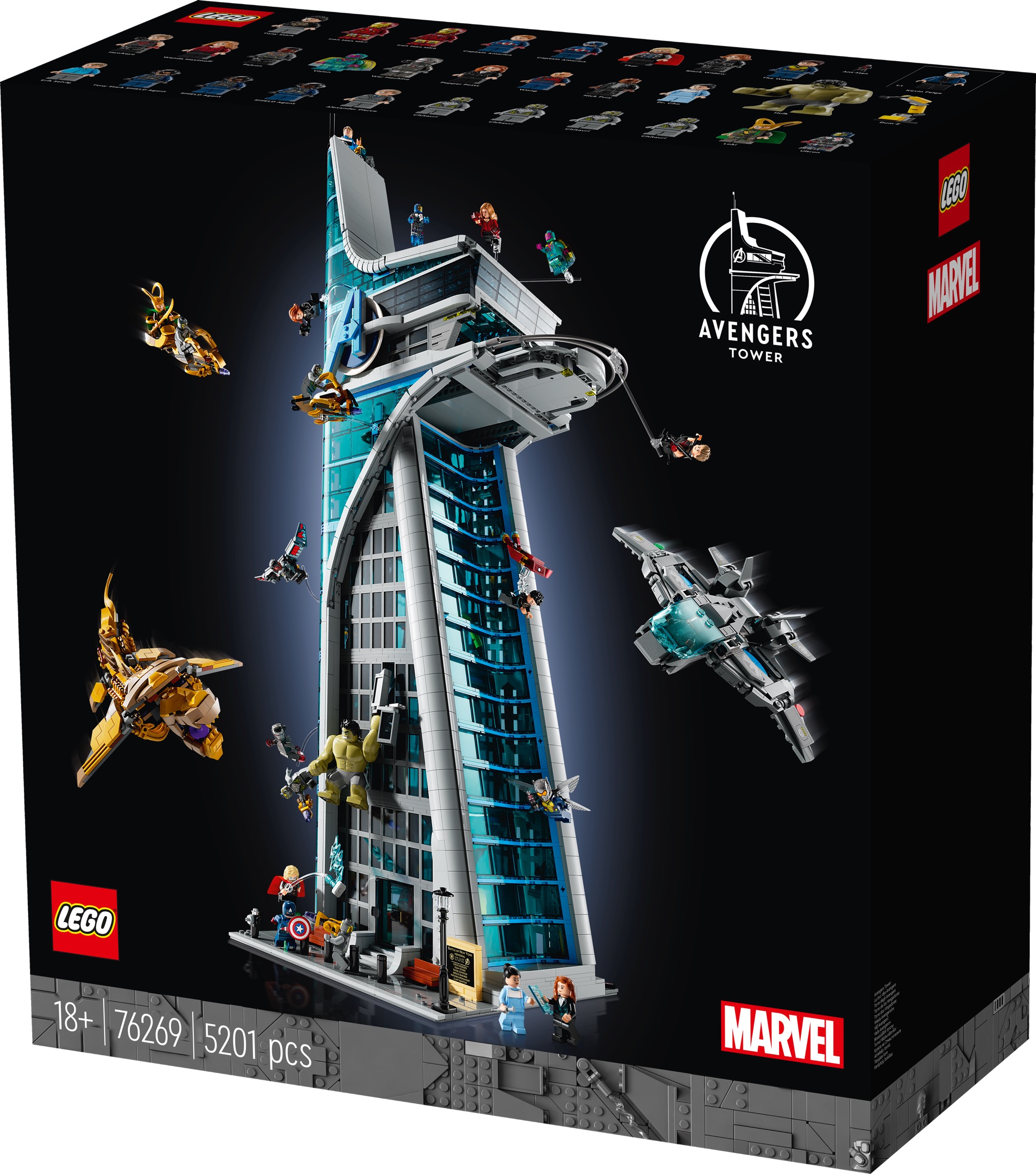 This 5,201-piece set stands as the tallest LEGO brick-built skyscraper ever made. It also includes 31 LEGO figures, the most ever included in one LEGO set, including all the iconic characters from Infinity Saga, as well as a Leviathan, the Quinjet and two Chitauri flyers, plus an exclusive LEGO minifigure of Marvel Studios President Kevin Feige. The Tower build also includes authentic action on every floor and, standing more than 35.5 in. (90 cm) tall, the model is filled to the roof with memorable scenes and an all-star cast of characters.