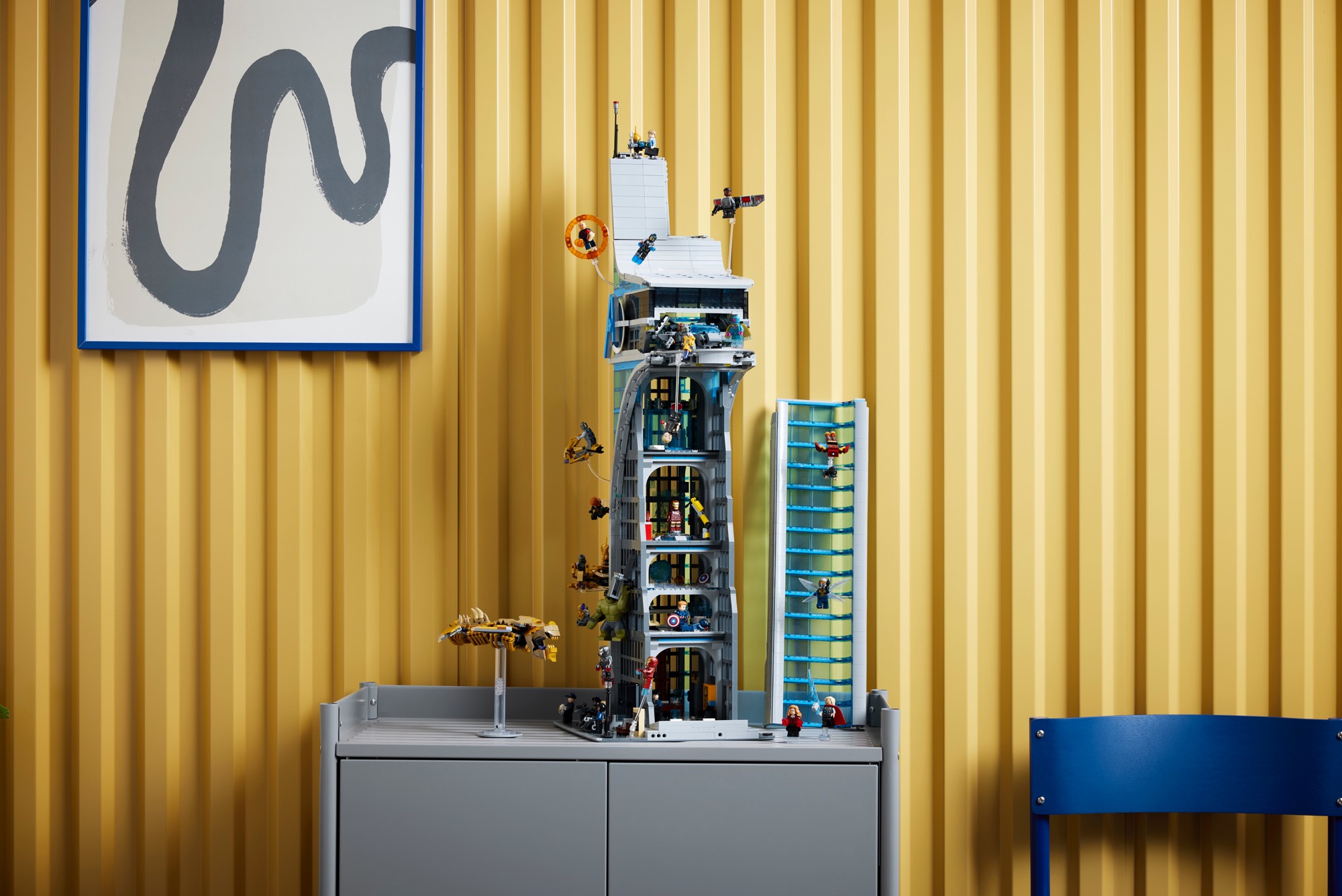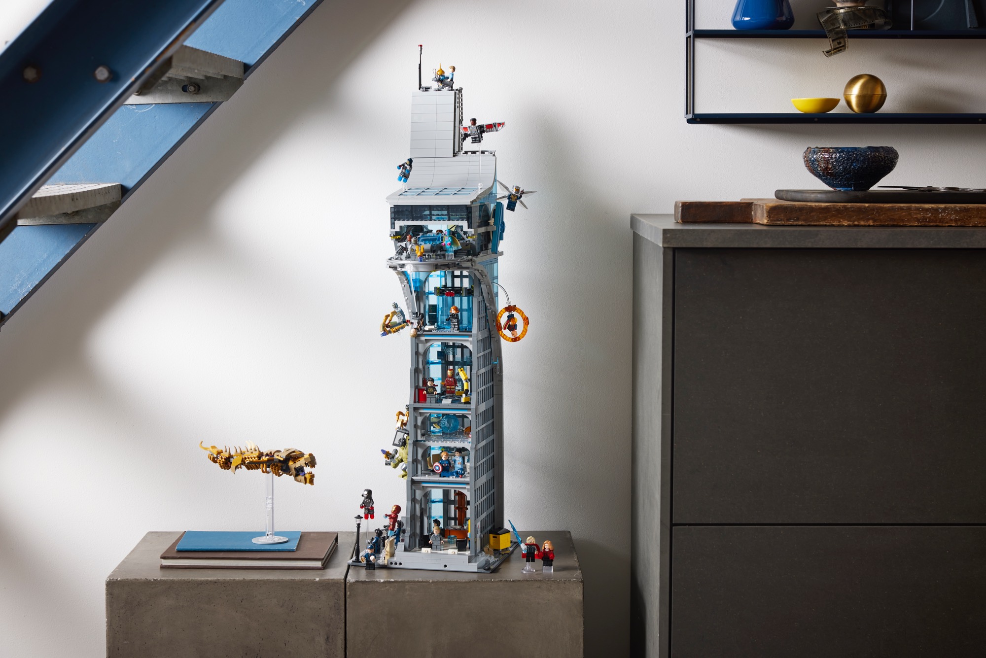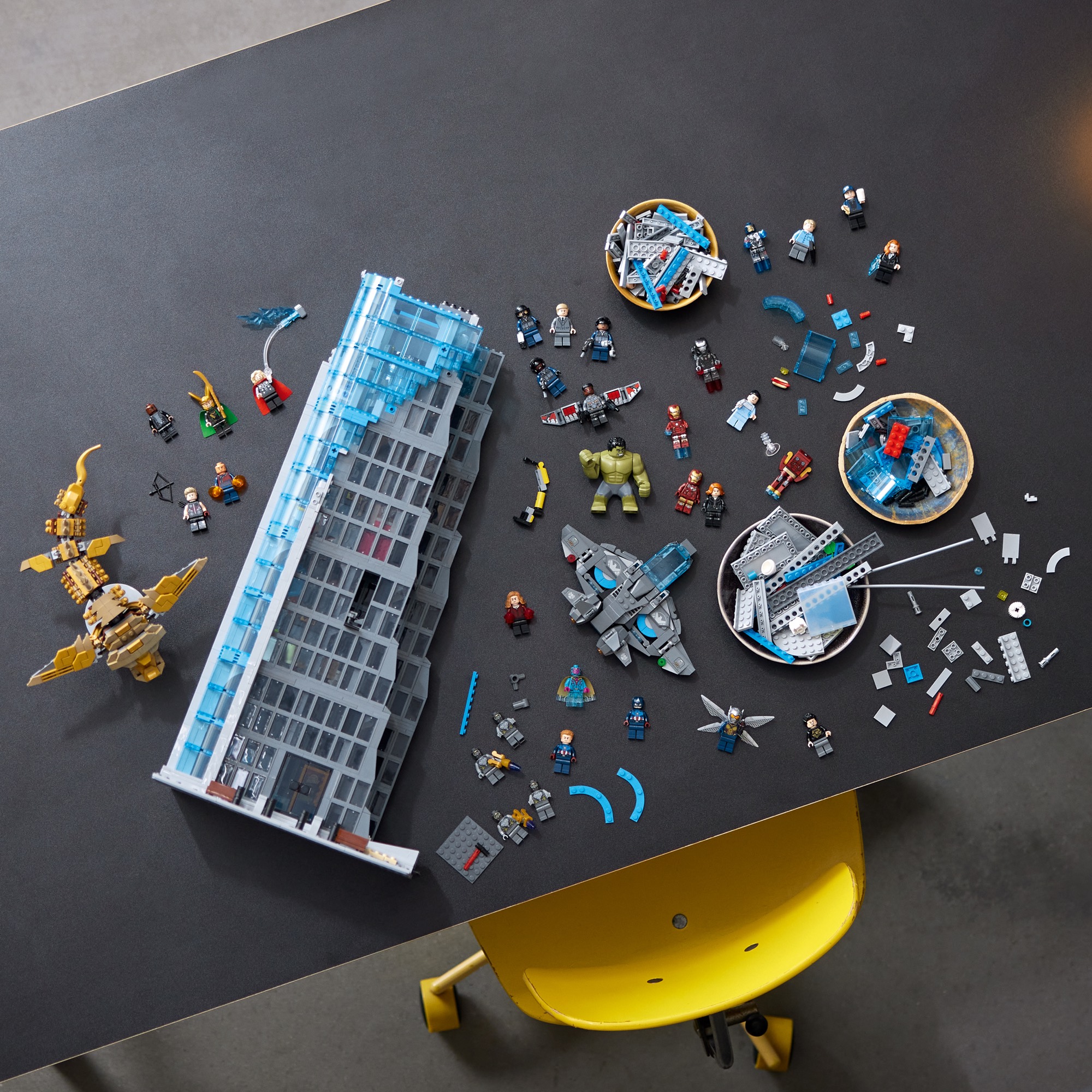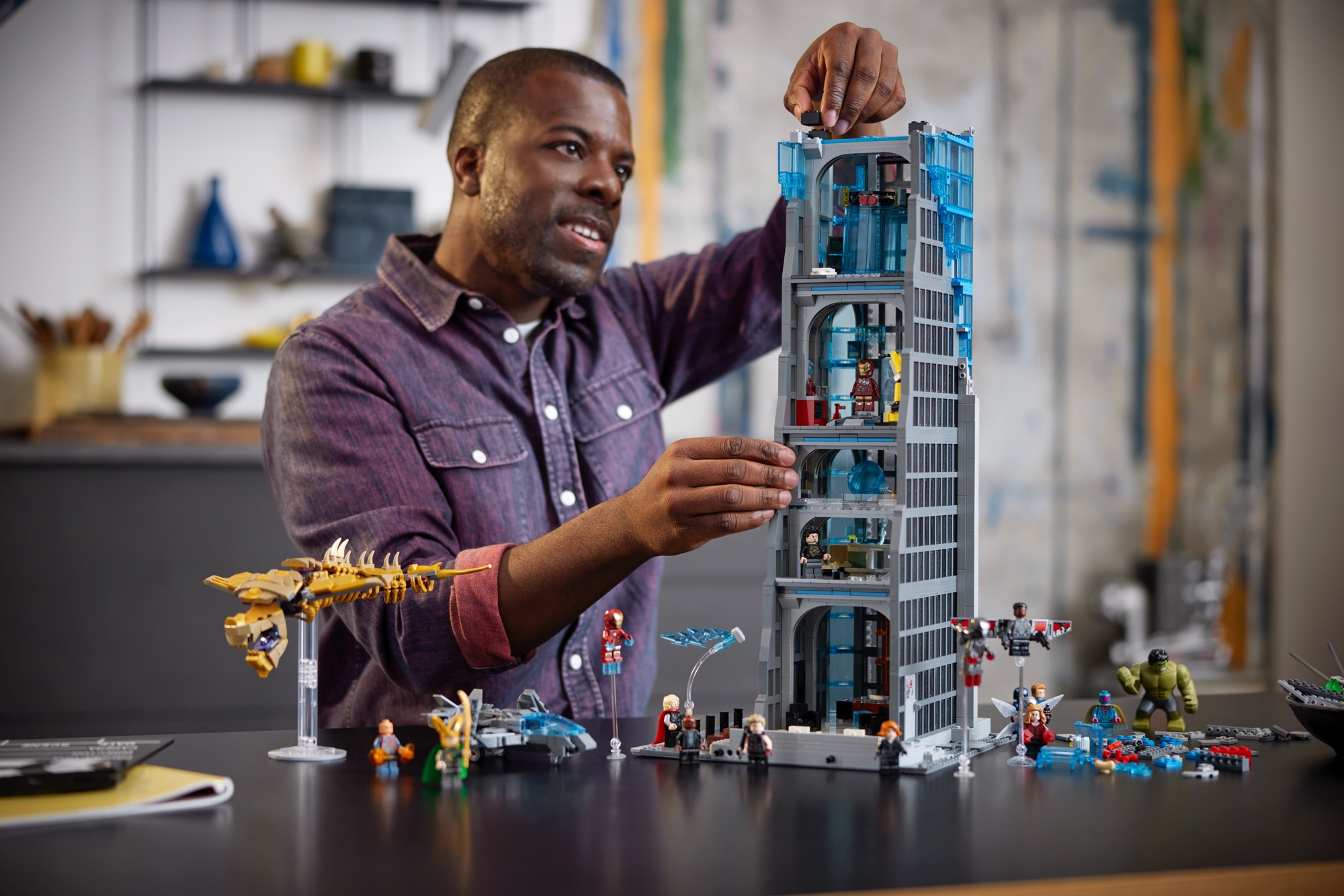 This 5,201-piece set stands as the tallest LEGO brick-built skyscraper ever made. It also includes 31 LEGO figures, the most ever included in one LEGO set, including all the iconic characters from Infinity Saga, as well as a Leviathan, the Quinjet and two Chitauri flyers, plus an exclusive LEGO minifigure of Marvel Studios President Kevin Feige. The Tower build also includes authentic action on every floor and, standing more than 35.5 in. (90 cm) tall, the model is filled to the roof with memorable scenes and an all-star cast of characters.