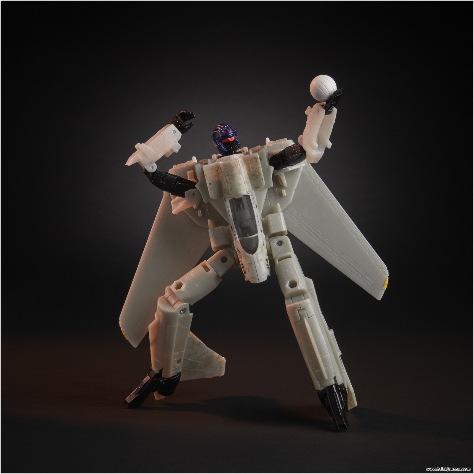 TRANSFORMERS Autobot MAVERICK (Ages 8 and Up/ Approx. Retail Price: $49.99)stands at 7 inches in robot mode and can convert from robot to classic Northrop Grumman F-14 Tomcat® jet mode in 25 steps (The F-14 Tomcat is a registered trademark of Northrop Grumman, and is used under license). He includes a screen-inspired miniature motorcycle accessory and 2 alternate hands that can hold the included volleyball accessory. This bot is always ready to go vertical in jet mode or dominate a slow-mo volleyball montage in robot mode. This MAVERICK robot figure also features folding jet wings, movie-inspired details, including a helmet design inspired by the 2020 Top Gun: Maverick film, and includes 4 missile accessories that can be mounted on figure’s arms in robot mode and under wings in jet mode. Even the packaging is inspired by the aircraft carrier!