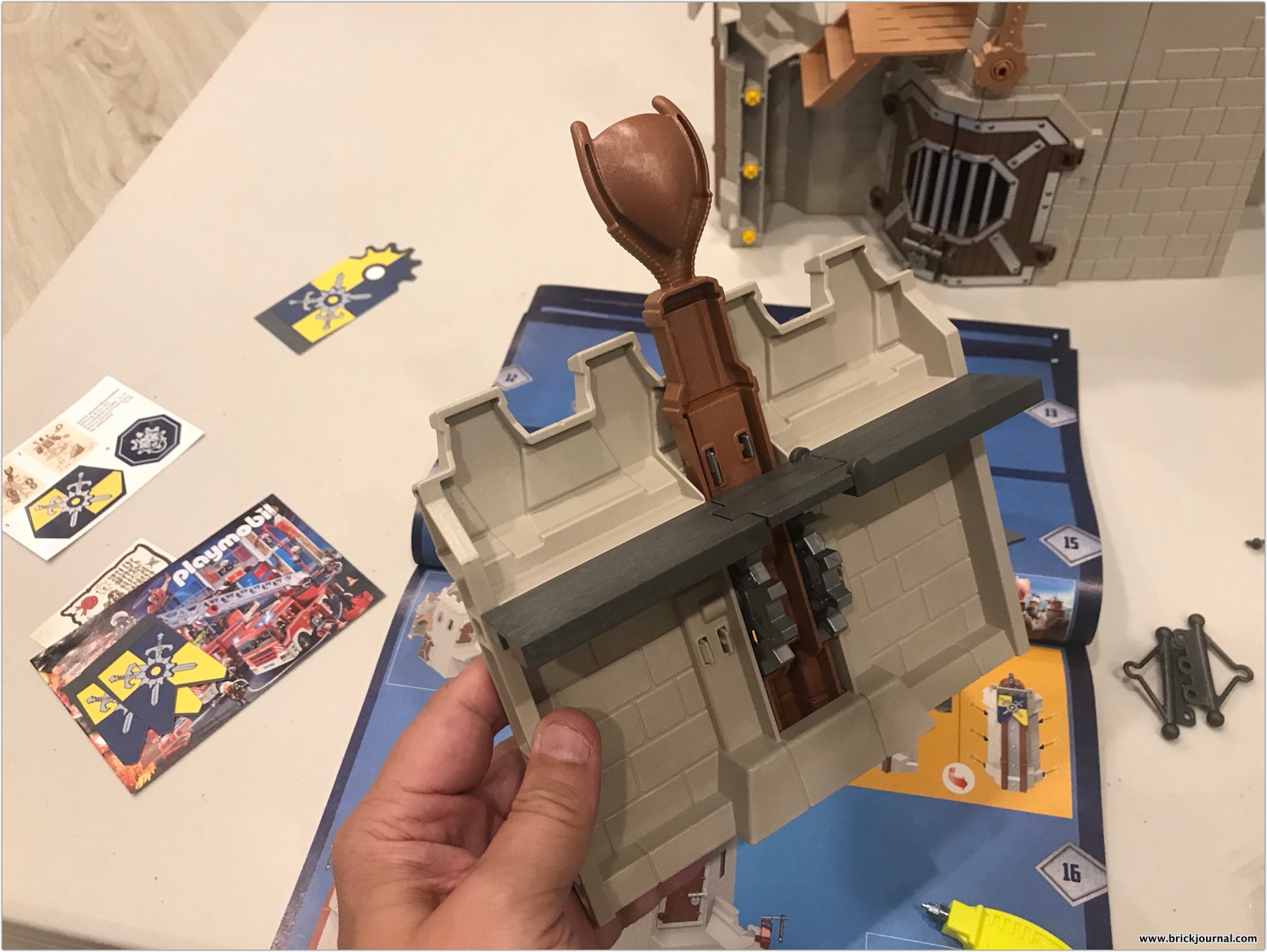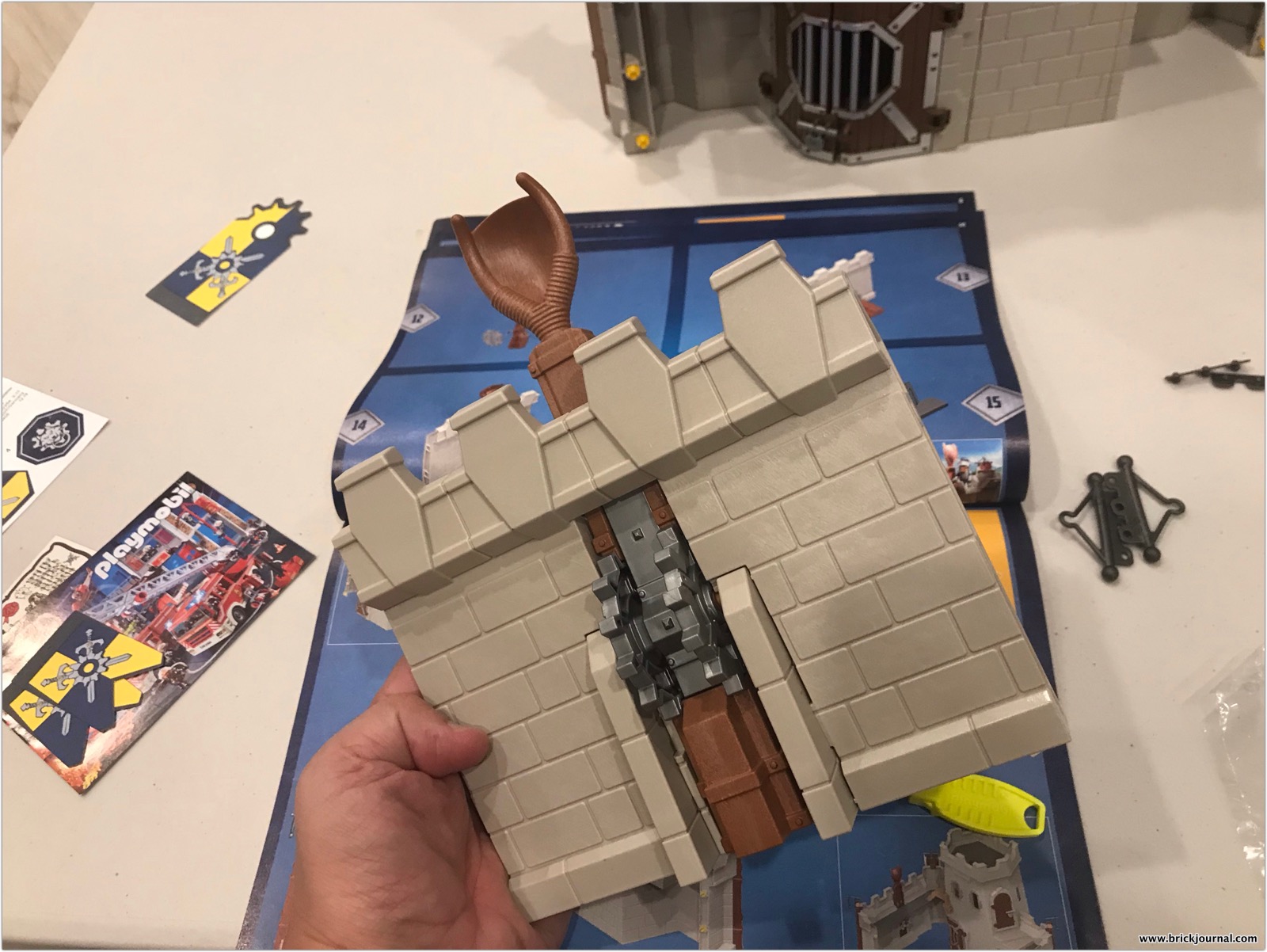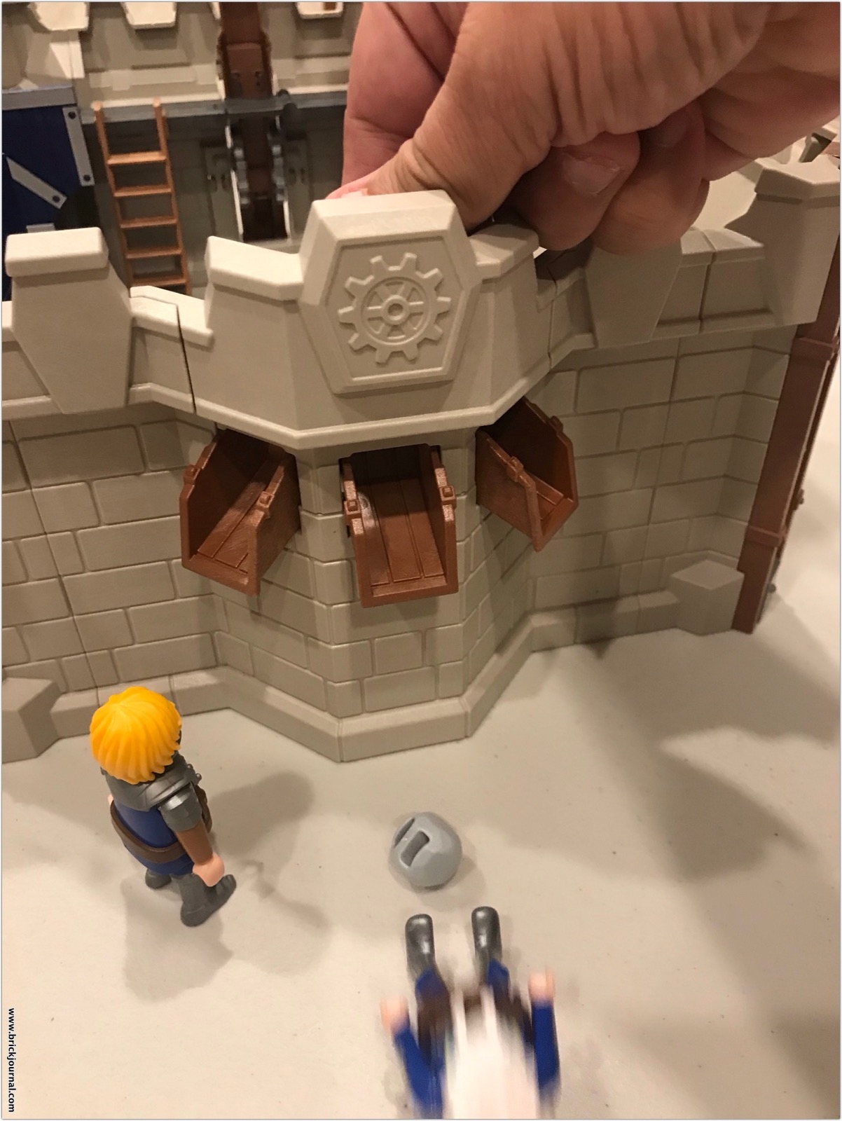 The last wall has a rock dropper – well, a multiple rock dropper. As with all the other walls, this is easy to build. It takes a little force to push the turret top on, but after that, it’s smooth sailing.