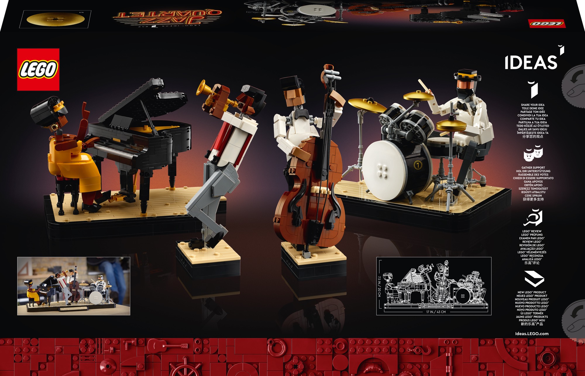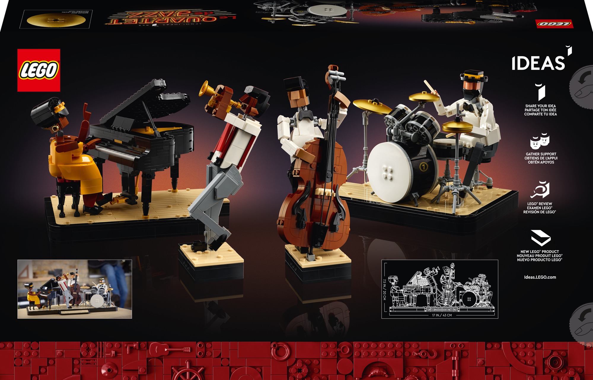LEGO Ideas fan designer Hsinwei Chi says, “There is nothing quite like the warmth of jazz music, so when I designed this set I wanted the LEGO bricks to truly capture the musical vitality of a live band. Much like LEGO building, free-spirited jazz can be medicine for your mind – so I hope when the Jazz Quartet set is built and displayed, people will feel a connection to the music.”