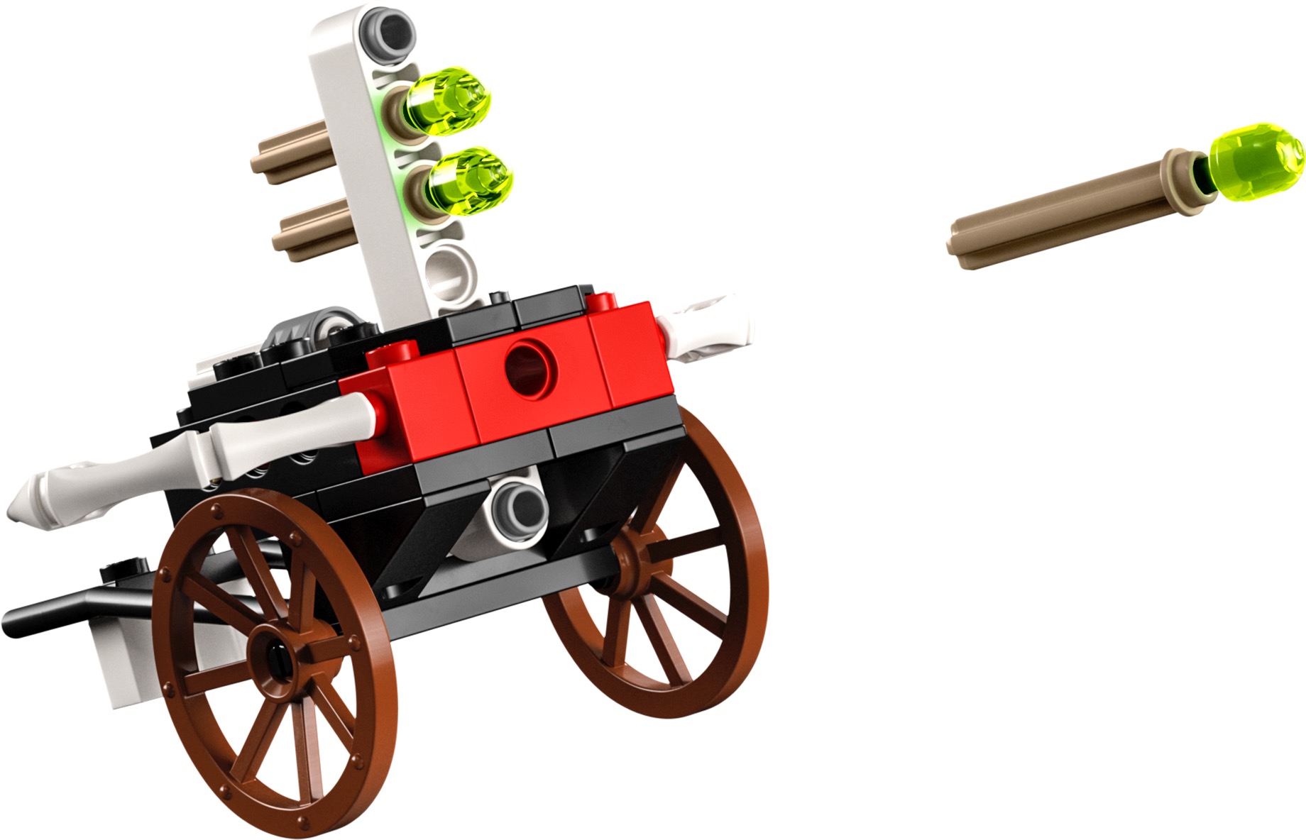 This cool toy playset for kids includes 5 minifigures: ninja warriors Jay and Nya, who are each armed with a sword, and green bone warriors Bone King, Bone Knight and Bone Hunter, who have their own weapons from the green bone warrior assorted weapons pack, plus a fast-firing double crossbow loaded with 4 darts and mounted on a wagon. There is also a Pixal Bot.