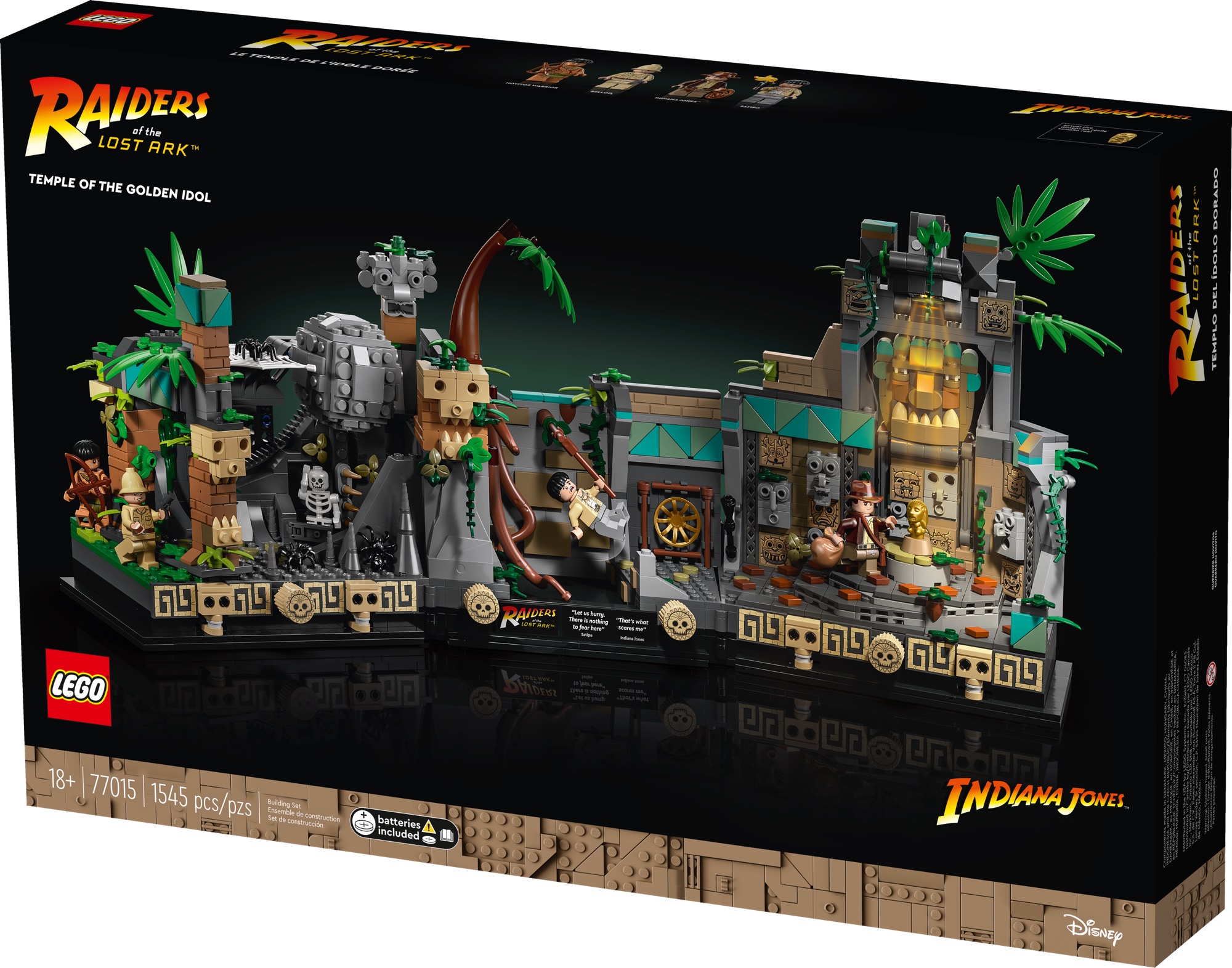 - 77015 LEGO® Indiana Jones™ Temple of the Golden Idol building set celebrates the legacy of Indiana Jones™ with this rewarding build where adults can recreate the iconic opening scene from the Indiana Jones and the Raiders of the Lost Ark movie. This impressive 1545-piece set pays homage to iconic characters and scenes that will look great displayed on a shelf once complete.