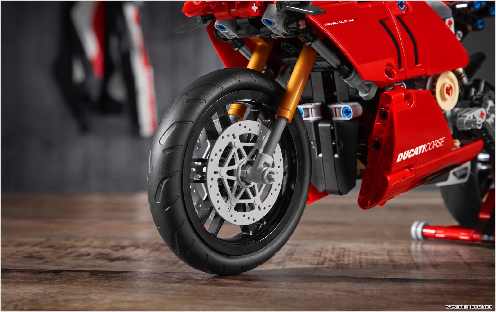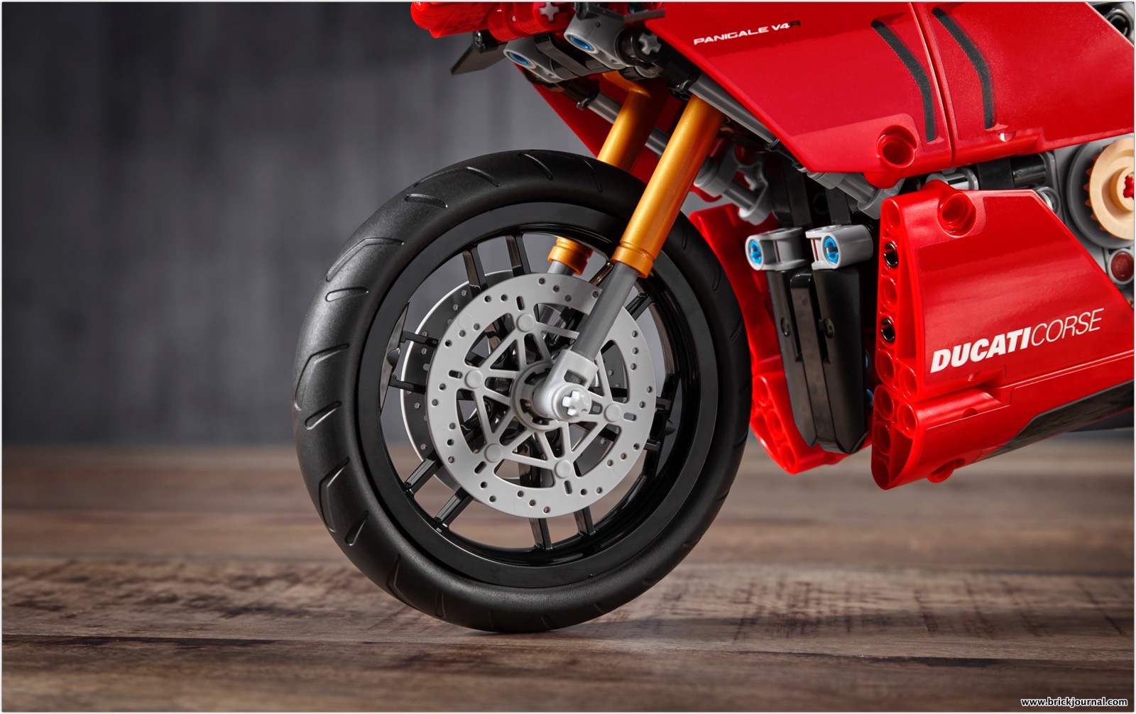 The new model is a spectacular replica of the iconic Italian motorcycle, combining LEGO® Technic™ and Ducati design DNA to recreate the curves and aerodynamic form of the two-wheeled wonder. Just like the visionary motorbike does in real life, the LEGO version transports LEGO builders to new heights as they easily act out the tight turns and fast straights that the bike can easily navigate thanks to its powerful engine.