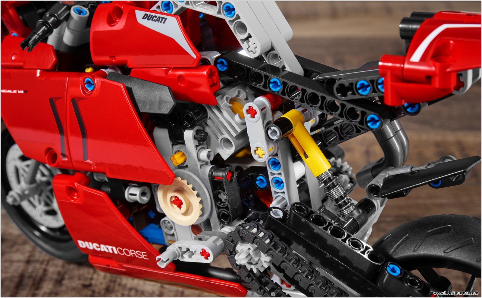 “The Ducati Panigale V4 R is such an elegant Italian icon and a true technological masterpiece.” commented Aurélien Rouffiange, Senior Designer at LEGO® Technic™. “It was essential that I included as many authentic details from the real motorbike as I could when designing the new LEGO® Technic™ version, ensuring I captured all the bike’s curves and the unique features. Just as Ducati continually pushes boundaries in its design, we demonstrated what the LEGO® Technic™ range is capable of by engineering a fully functioning motorcycle gearbox for the first time and connecting it to the spinning V4 cylinder engine using existing pieces.”